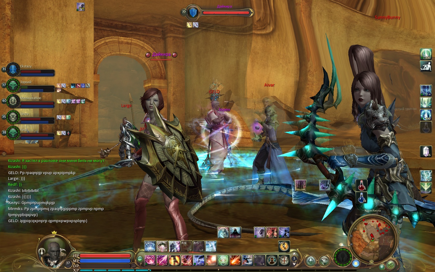 Плюнув на это все.Я телепортировался.Хах!Oh nooo.Я застрял между разломом и какойто стеной прямо у нях!!!Перепробовав все возможные пути отступления.Решил поставить ТП и свалить от туда пока не отгреб по самый не балуй.Но не тут то было.За это время понабежало солидное количество разгневанных няшек.И тут возникает вопрос: Почему они меня не убили?Все просто.Застряв в стене около разлома я попал в баг который четко писал по середине экрана: Вы не можете атаковать тк мешает стена или что то в этом роде, ну вы поняли.Самое веселое в этом, что няхи которых собралось во круг меня как мух на говно как пчел на мед, тоже не могли меня атаковать.EPIC FAIL